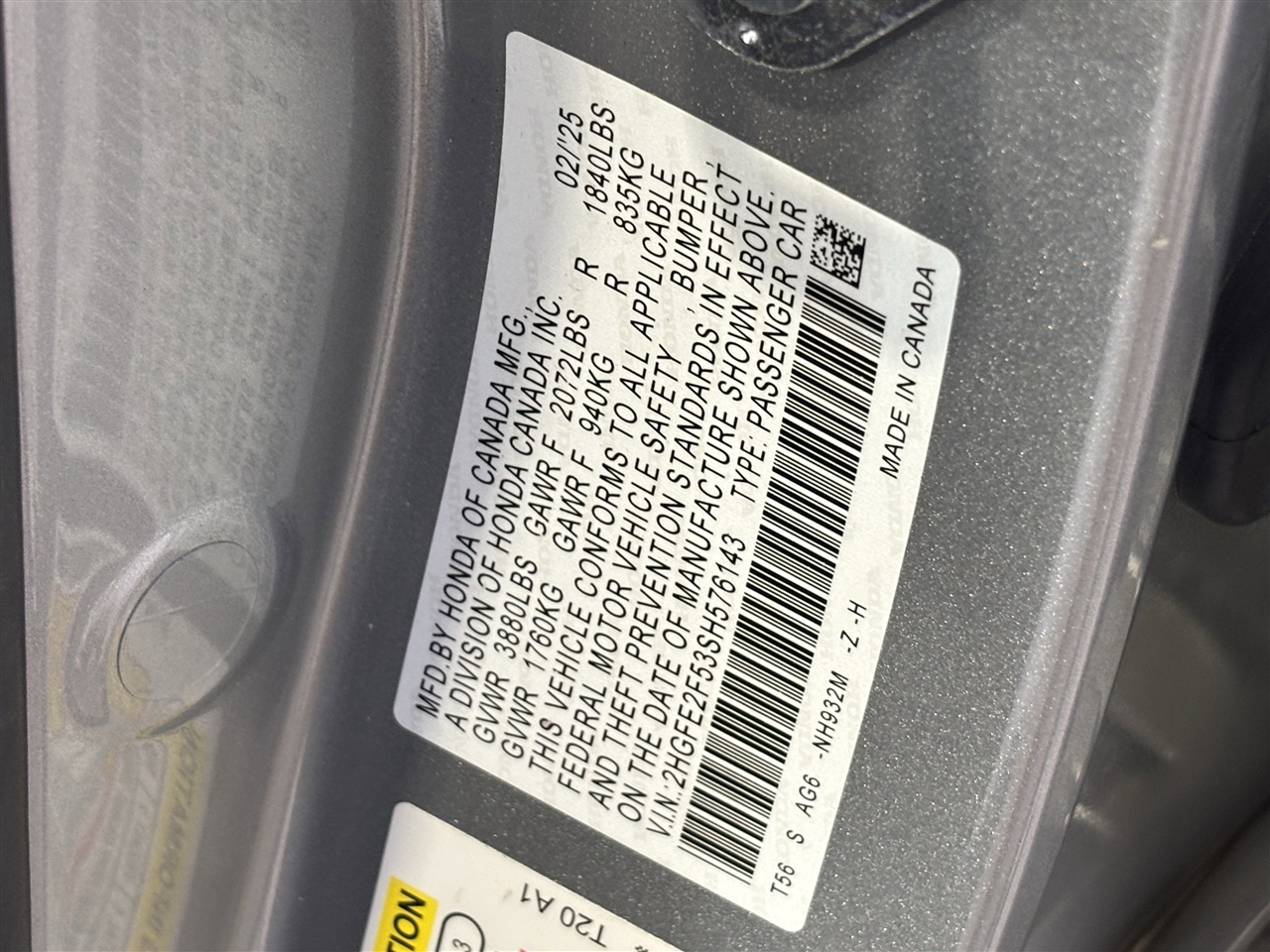 Vehicle Inquiry for 2025 Honda Civic Sport