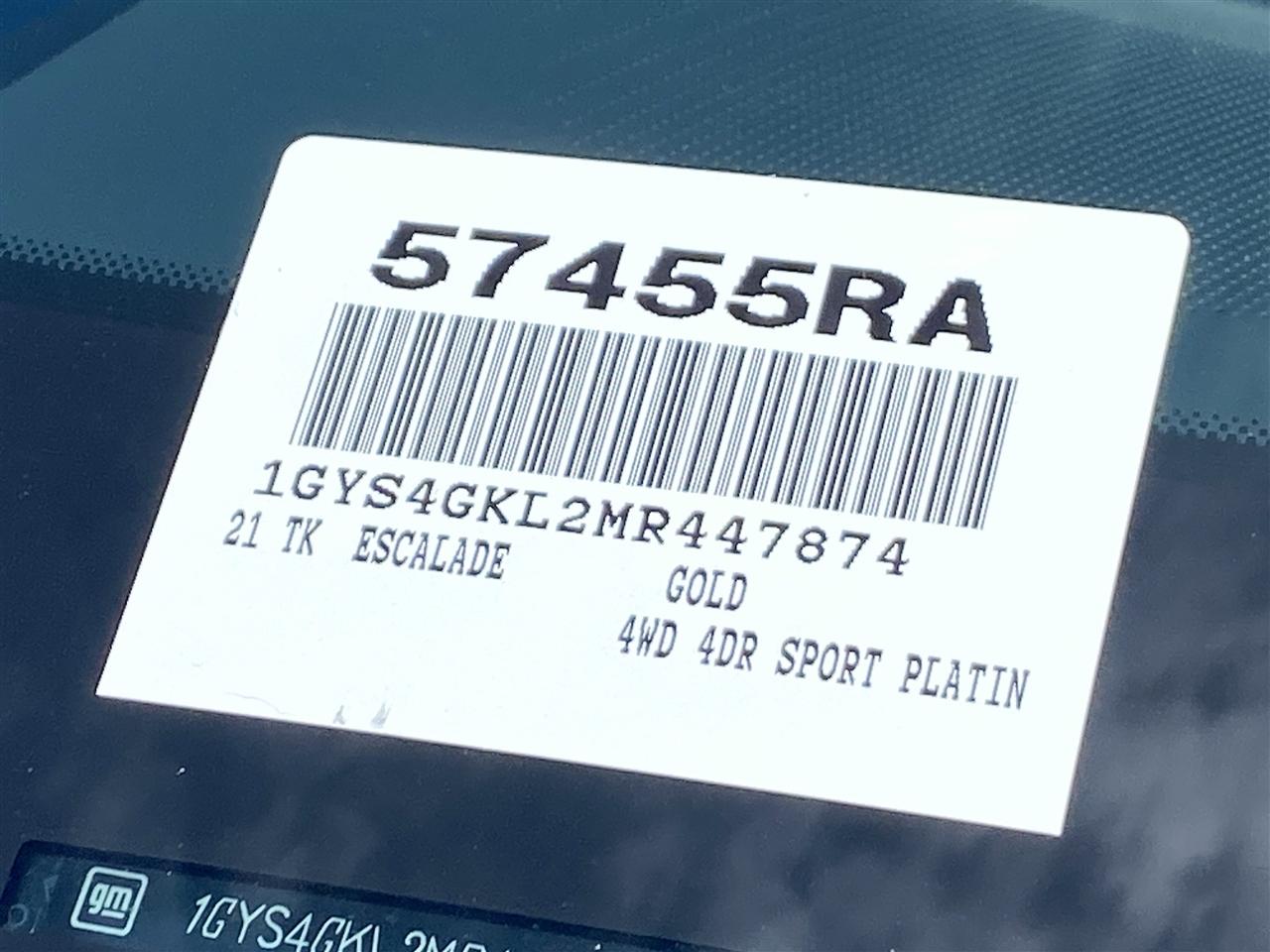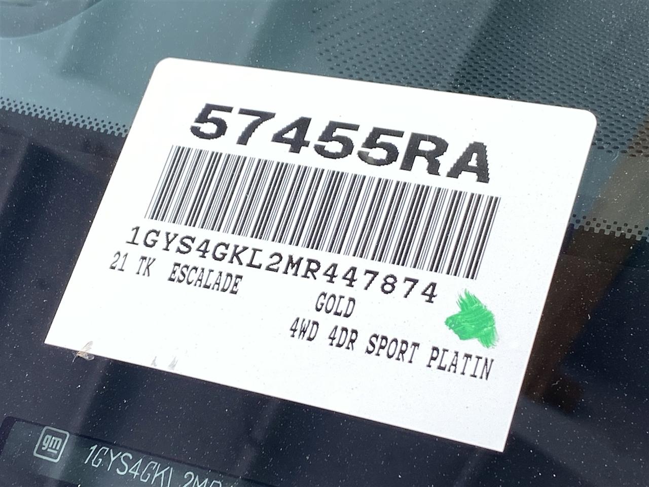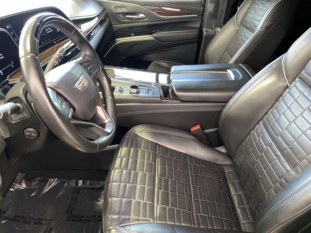ALG Residual Value. Only 32,998 Miles! Scores 19 Highway MPG and 13 City MPG! This Cadillac Escalade delivers a Gas V8 6.2L/376 engine powering this Automatic transmission. SEATS, SECOND ROW BUCKET, POWER RELEASE (STD), REAR AXLE, 3.23 RATIO, NOT EQUIPPED WITH STEERING COLUMN LOCK see dealer for details (Most vehicles built on or after 7-5-2021 will have (R7N) Not Equipped with Steering Column Lock, which deletes (N06) Steering Column Lock.).* This Cadillac Escalade Features the Following Options *LICENSE PLATE BRACKET, FRONT, Wireless Apple CarPlay/Wireless Android Auto, Wipers, front intermittent, Rainsense, Wiper, rear intermittent, Windshield, solar absorbing, Universal Home Remote includes garage door opener, programmable, Trailer brake controller, integrated, Tire, spare 265/70R17SL all-season, blackwall, Tire Pressure Monitoring System auto learn, includes Tire Fill Alert (does not apply to spare tire), Teen Driver a configurable feature that lets you activate customizable vehicle settings associated with a key fob, to help encourage safe driving behavior. It can limit certain available vehicle features, and it prevents certain safety systems from being turned off. An in-vehicle report card gives you information on driving habits and helps you to continue to coach your new driver.
