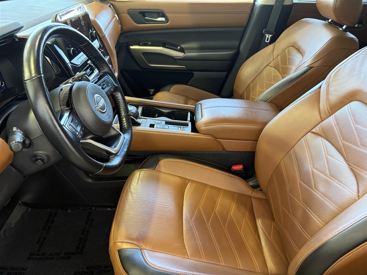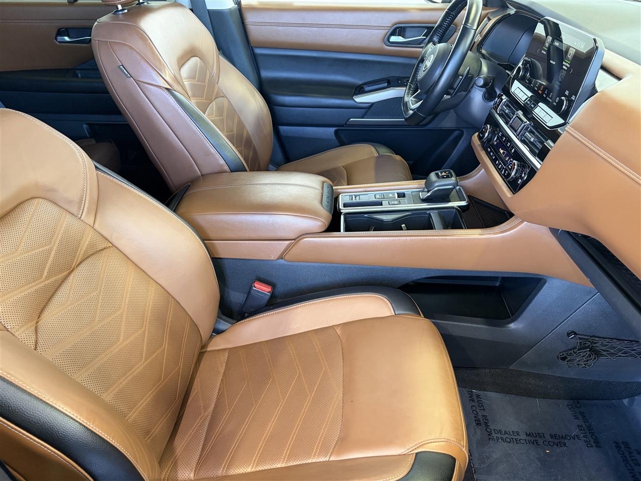 Only 45,131 Miles! Scores 26 Highway MPG and 21 City MPG! This Nissan Pathfinder boasts a Regular Unleaded V-6 3.5 L/213 engine powering this Automatic transmission. GUN METALLIC/SUPER BLACK, CHESTNUT, SEMI-ANILINE LEATHER SEATING SURFACES -inc: quilting, [M92] CARGO PACKAGE -inc: dividers and console net, Cargo Area Protector, Cargo Net, First Aid Kit.*This Nissan Pathfinder Comes Equipped with These Options *[B93] CROSS BARS, [B92] BLACK SPLASH GUARDS (SET OF 4), Wireless Phone Connectivity, Window Grid And Fixed Antenna, Wheels: 20 Alloy w/Unique Finish -inc: dark metallic gray finish, Vehicle Dynamic Control (VDC) Electronic Stability Control (ESC), Valet Function, Urethane Gear Shifter Material, Trunk/Hatch Auto-Latch, Trip Computer.