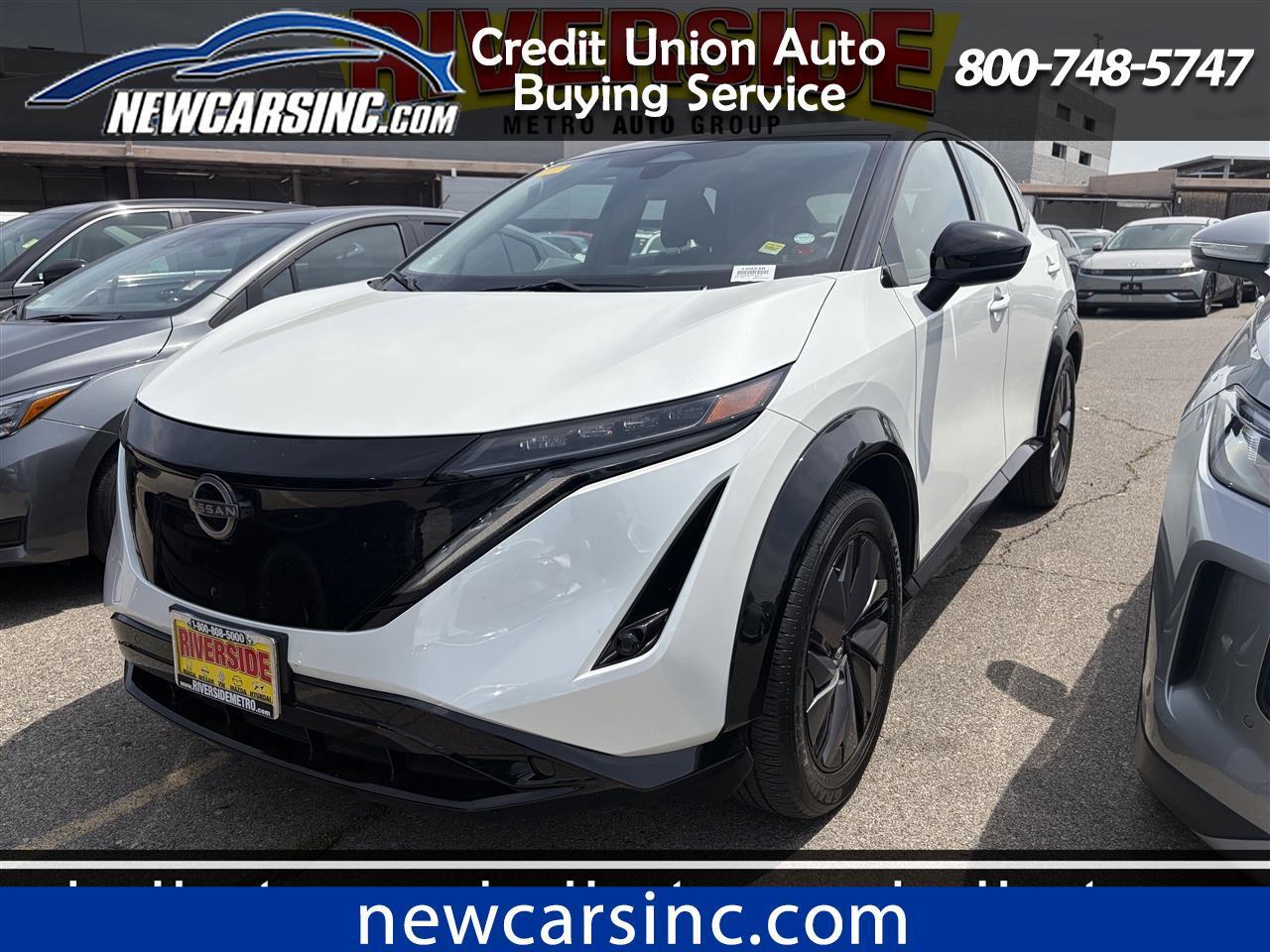 Only 3,508 Miles! This Nissan ARIYA delivers a Electric engine powering this Automatic transmission. EVEREST WHITE PEARL TRICOAT/BLACK DIAMOND PEARL, CHARCOAL, LEATHERETTE SEATING SURFACES, [N92] ILLUMINATED KICK PLATES.* This Nissan ARIYA Features the Following Options *[L92] CARPETED FLOOR MATS & FIRST AID KIT, [H92] NISSAN USB CHARGING CABLE SET, Wireless Phone Connectivity, Wing Spoiler, Wheels: 19 Alloy -inc: aero wheel covers, Wheels w/Painted Accents w/Half Wheel Covers, Voice Activated Dual Zone Front Automatic Air Conditioning, Vehicle Dynamic Control (VDC) Electronic Stability Control (ESC), Trip Computer, Transmission w/Driver Selectable Mode.